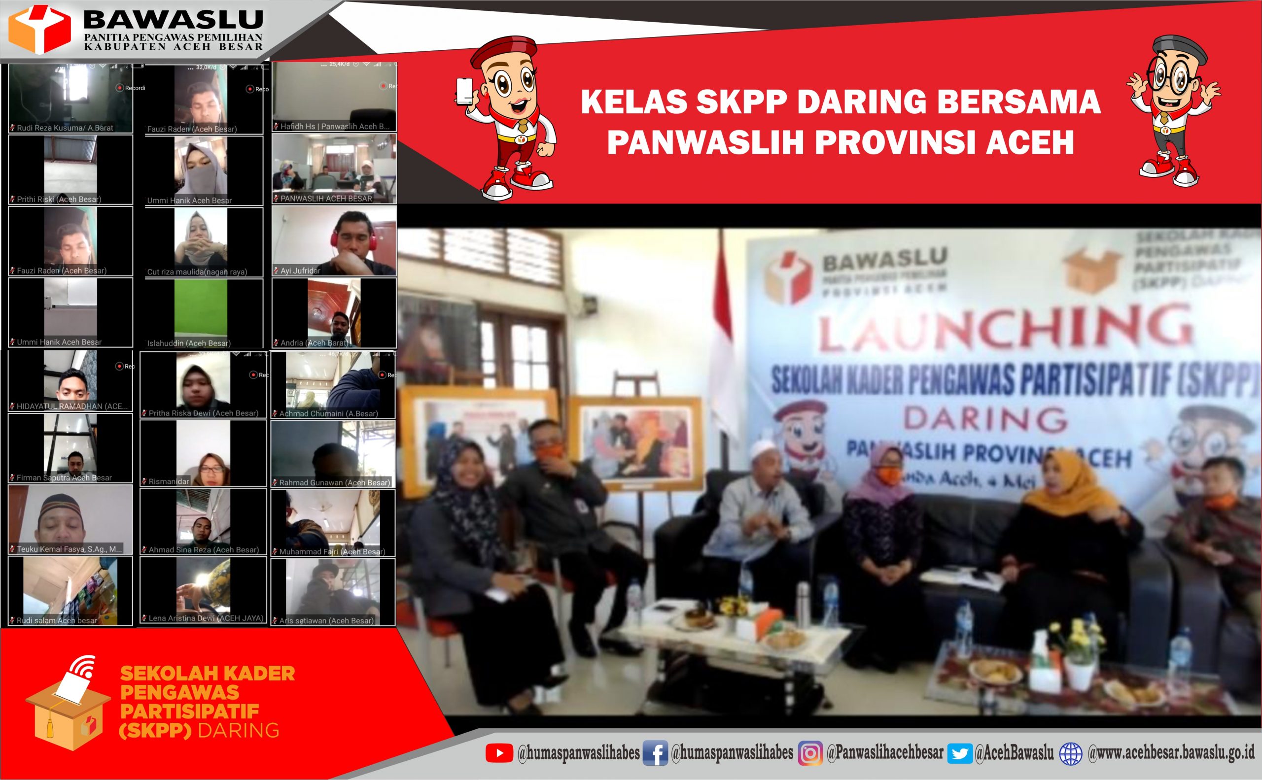 Kota Jantho - Badan Pengawas Pemilihan Umum (Bawaslu) RI menggelar Sekolah Kader Pengawasan Partisipatif (SKPP). Program ini adalah gerakan bersama antara Bawaslu dengan masyarakat untuk mendorong pengawasan partisipatif. Di tengah pandemi Covid-19 membuat interaksi antar manusia harus menerapkan protokol social distancing sehingga transfer keilmuan dalam program ini dilakukan secara daring.