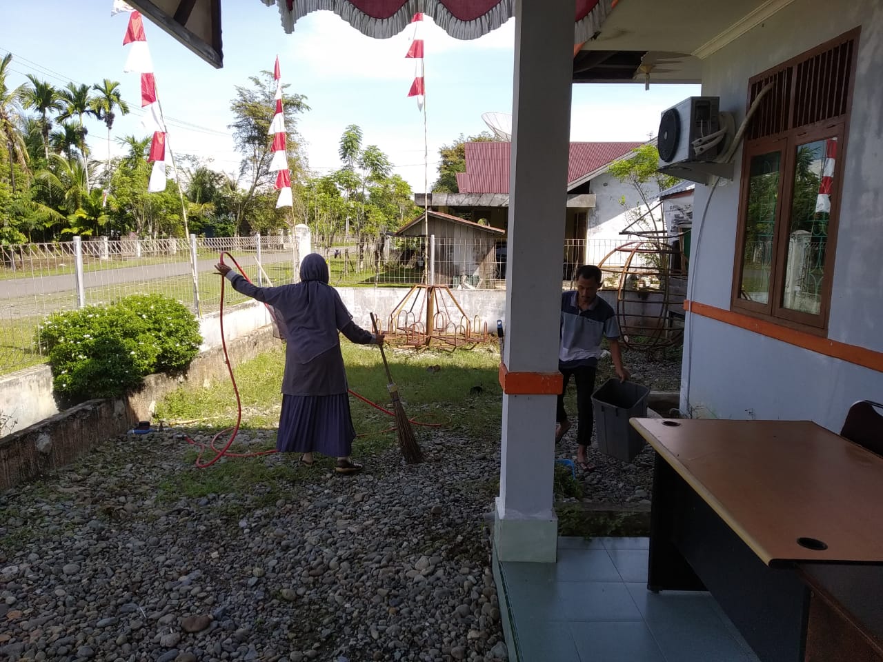 Kota Jantho - Selaras dengan Program Pemerintah Pusat dan Daerah serta menindak lanjuti Instruksi dari Panwaslih Propinsi Aceh yang terus dengan getol mengsosialisasikan agar seluruh Panwaslih yang ada di kabupaten/Kota dalam lingkup Provinsi Aceh untuk dapat meningkatkan kinerja pengawasan dengan menjaga lingkungan kerja yang bersih, aman nyaman dan lestari. Dalam Rangka inilah Panwaslih Aceh Besar bersama Ketua dan Para Komisioner, Korsek dan staf di lingkungan Panwaslih Kabupaten Aceh Besar melakukan Gerakan Jumat Bersih dalam rangka menjaga Soliditas dan keakraban membina hubungan kerja yang baik dan nyaman di lingkungan Panwaslih Aceh Besar (28/08/2020).