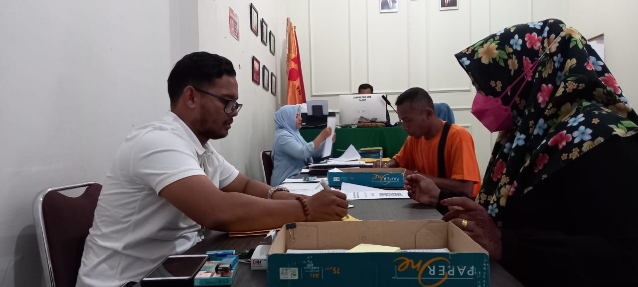Petugas penerima pendaftaran sedang memeriksa berkas persyaratan administrasi calon anggota Panwaslu Kecamatan, di Kantor Panwaslih Kabupaten Aceh Besar, yang berlangsung pada tanggal 21 s.d. 27 September 2022[/caption]